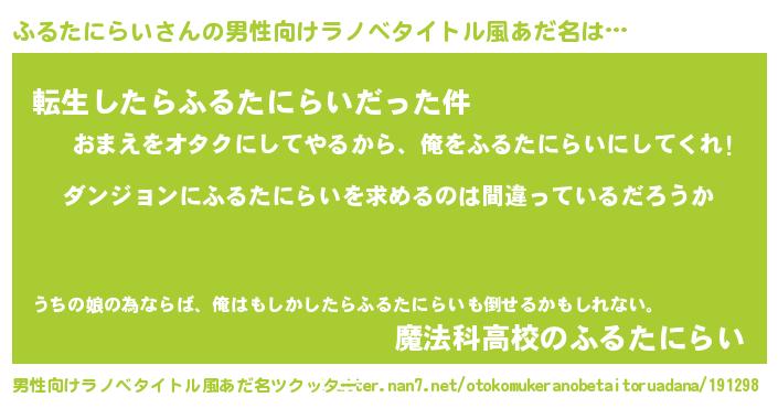 | 女子向けラノベタイトル風あだ名 | 『ふるたにらいは平凡を望む』 |
