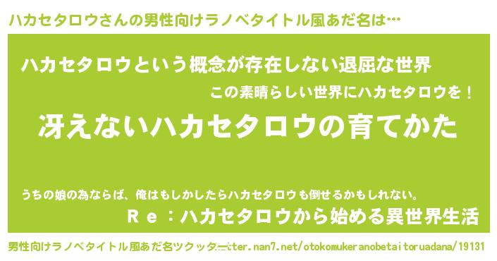 | 胡散臭い通販商品みたいなあだ名 | 『来世でも幸せになれる健康食品…その名も「ハカセタロウ」』 |