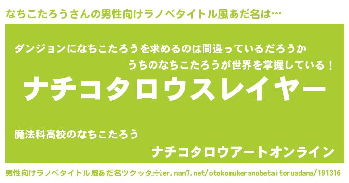 | 料理風あだ名 | 『なちこたろうごはん』 |