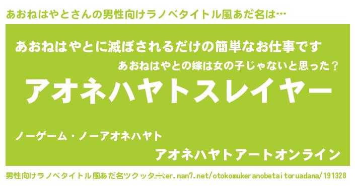 | 胡散臭い通販商品みたいなあだ名 | 『必ず成功する霊験あらたかなお札…その名も「あおねはやと」』 |