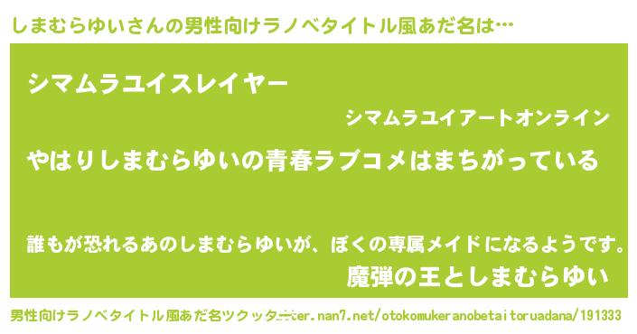 | ファンタジー風あだ名 | 『エターナルシマムラユイー』 |