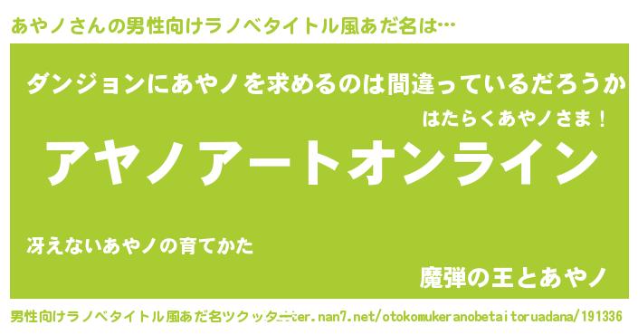| ヒーロー風カッコイイあだ名 | 『スーパーアヤノ』『魔戒騎士アヤ』 |