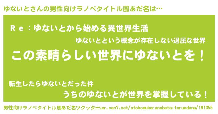 | 意味不明あだ名 | 『住所不定無職ゆないと(4歳)』 |