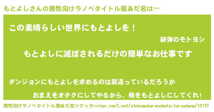 | ヒーロー風カッコイイあだ名 | 『仮面モトダー』『慈愛の使者もとよし』 |
