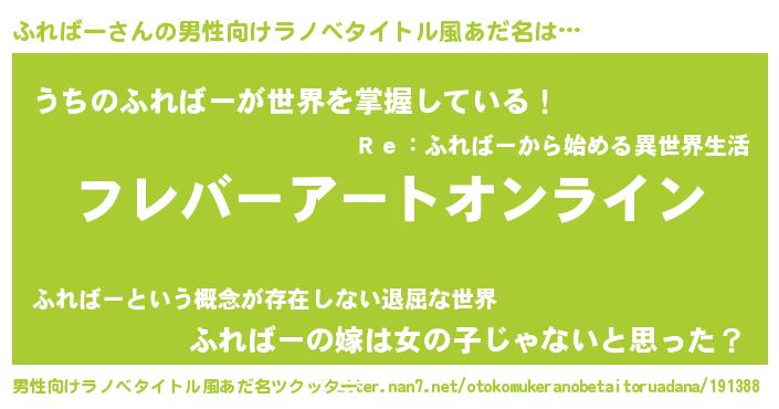 | 女子向けラノベタイトル風あだ名 | 『ふればー姫と円卓の騎士』 |