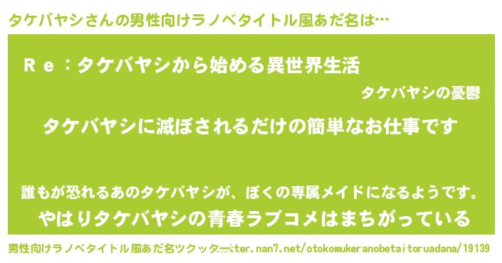 | ファンタジー風あだ名 | 『ゼタケトゥ』『エターナルタケバヤシー』 |