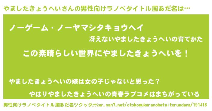やましたきょうへいさんの男性向けラノベタイトル風あだ名をツクッター!