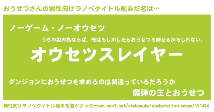 | ヒーロー風カッコイイあだ名 | 『正義の使者おうせつ』『仮面オウダー』 |
