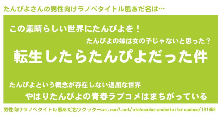 | 意味不明あだ名 | 『もやし科たんぴよ属』 |