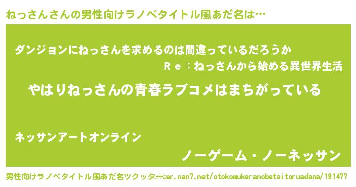 | 自動車の名前っぽいあだ名 | 『ネクア』『ネルトッパン』『ネンR』 |