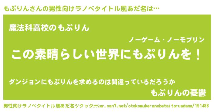 | 胡散臭い通販商品みたいなあだ名 | 『あなたにだけ特別に提供する100年もののヴィンテージワイン…その名も「もぷりん」』 |