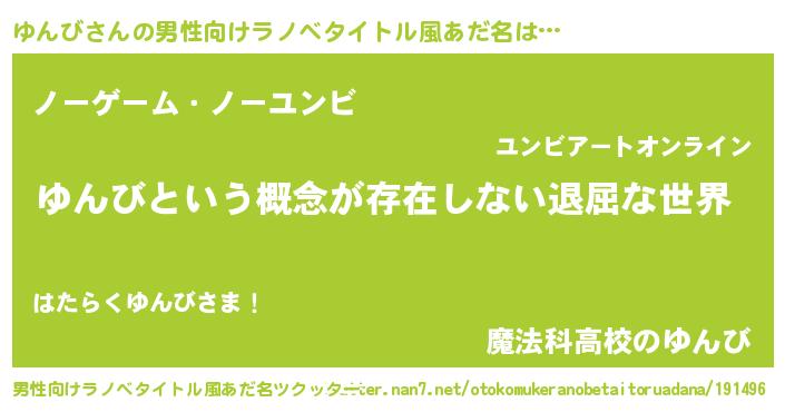| 意味不明あだ名 | 『永久保存ゆんび』『自称ゆんび』 |