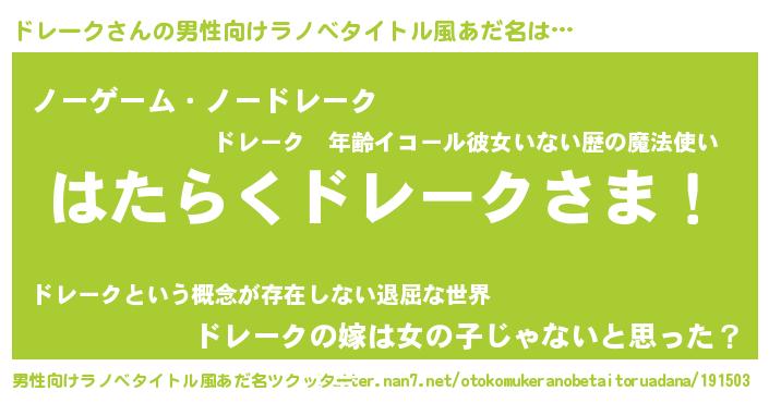 | 女子向けラノベタイトル風あだ名 | 『首の姫と首なしドレーク』 |