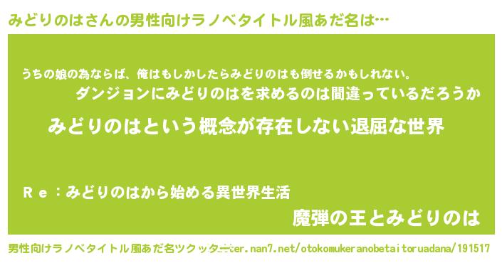 | 女子向けラノベタイトル風あだ名 | 『異世界で失敗しない100のみどりのは』 |
