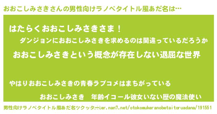 おおこしみさきさんの男性向けラノベタイトル風あだ名をツクッター!