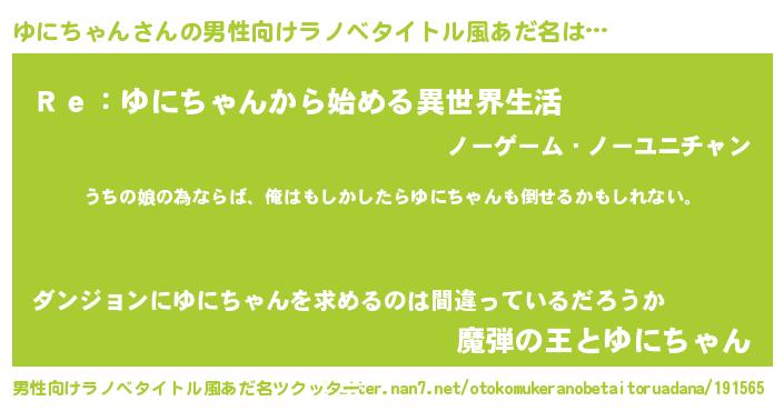 | 意味不明あだ名 | 『ゆにちゃんフォーエバー』 |