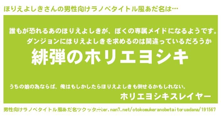 | 意味不明あだ名 | 『永久保存ほりえよしき』 |
