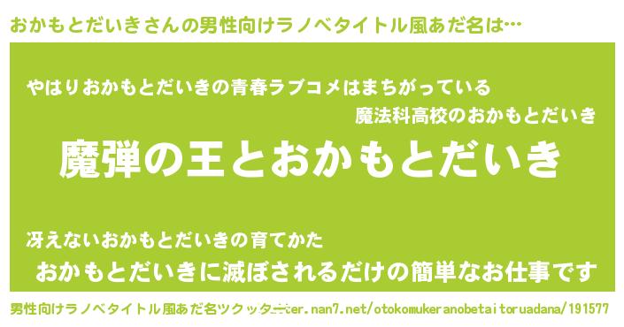 | 女子向けラノベタイトル風あだ名 | 『おかもとだいきが死なない童話 林檎のおかもとだいきの診療簿』 |