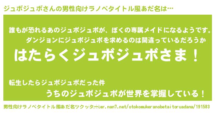 | 胡散臭い通販商品みたいなあだ名 | 『来世でも幸せになれる水素水…その名も「ジュボジュボ」』 |