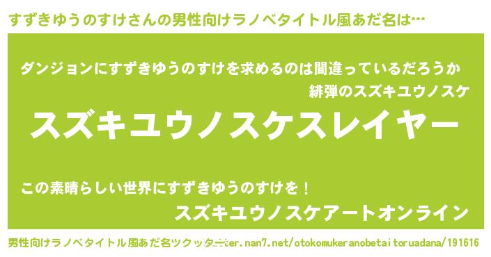 | ヒーロー風カッコイイあだ名 | 『暗黒騎士スズ』『仮面スズダー』 |
