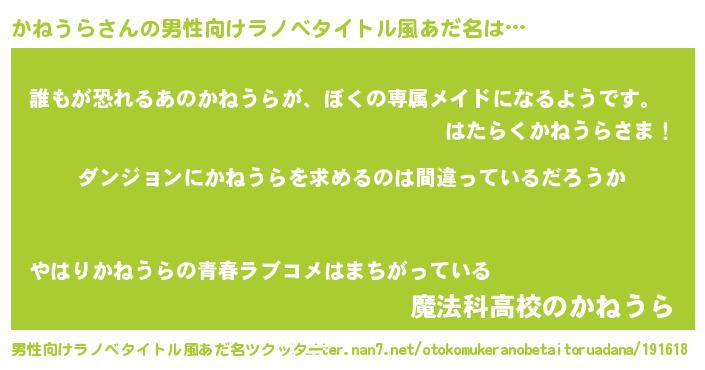 | 女子向けラノベタイトル風あだ名 | 『かねうらの卵を拾いまして』 |
