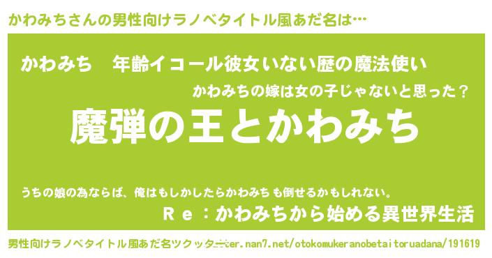 | 女子向けラノベタイトル風あだ名 | 『乙女ゲームの破滅フラグしかない悪役かわみちに転生してしまった…』 |