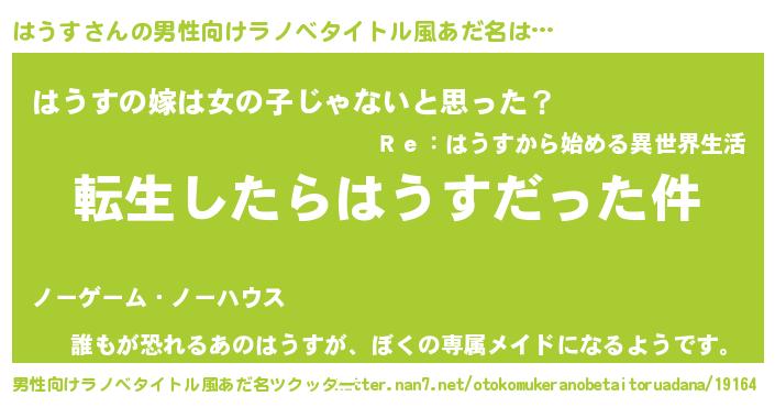 | 胡散臭い通販商品みたいなあだ名 | 『伝統あるサプリメント…その名も「はうす」』 |