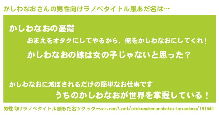| 胡散臭い通販商品みたいなあだ名 | 『全米が絶賛したサプリメント…その名も「かしわなお」』 |