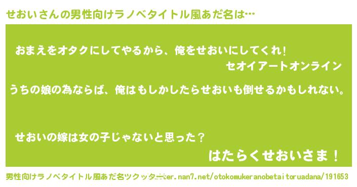 | 女子向けラノベタイトル風あだ名 | 『せおい伯爵の花嫁』『せおい様がみてる』 |