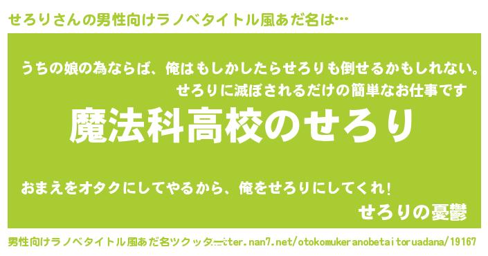 | 女子向けラノベタイトル風あだ名 | 『せろりなんてお断りですっ。』 |