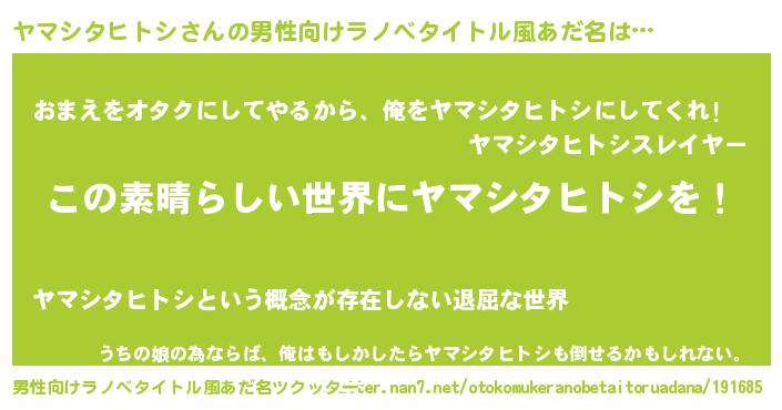 | 意味不明あだ名 | 『住所不定無職ヤマシタヒトシ(40歳)』 |