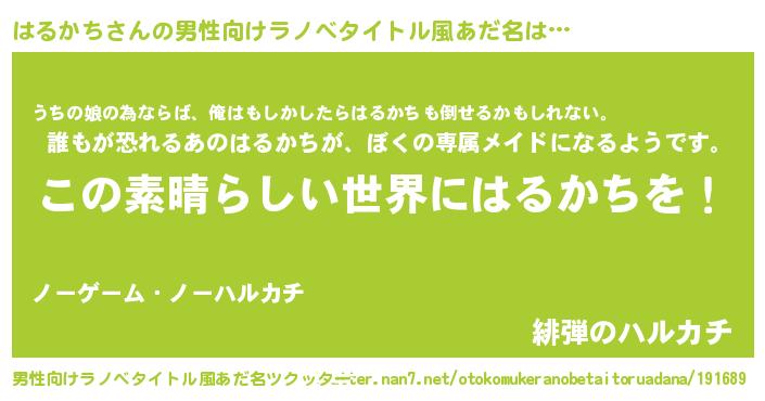 | 女子向けラノベタイトル風あだ名 | 『悪役はるかちに転生したようですが、知った事ではありません』 |
