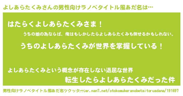 | 欧米人風あだ名 | 『よしあらたくみ・ステッグマイヤー』 |