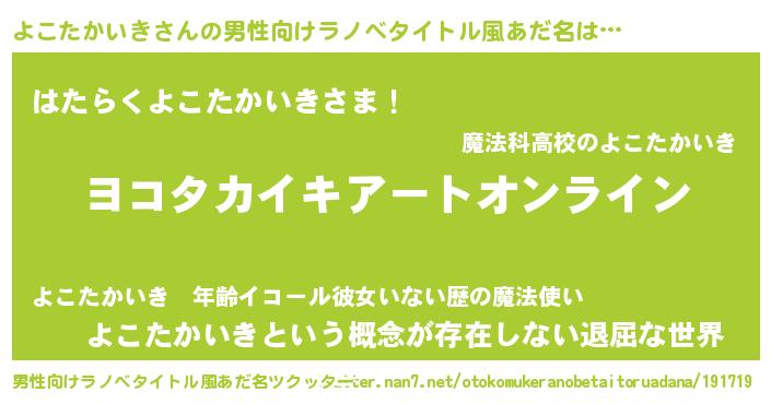 | 胡散臭い通販商品みたいなあだ名 | 『億万長者になれる霊験あらたかなお札…その名も「よこたかいき」』 |