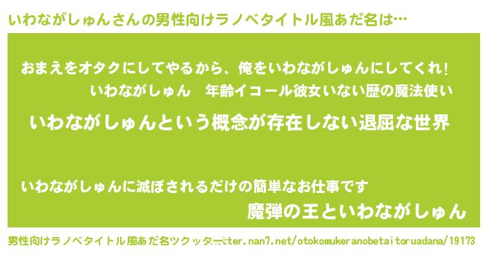 | ヘコむあだ名 | 『いわながしゅん(震え声)』『いわっぺ』 |
