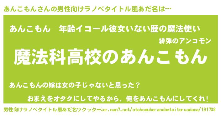 | 女子向けラノベタイトル風あだ名 | 『あんこもんアンティーク』 |