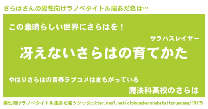 | 意味不明あだ名 | 『住所不定無職さらは(74歳)』『自称さらは』 |