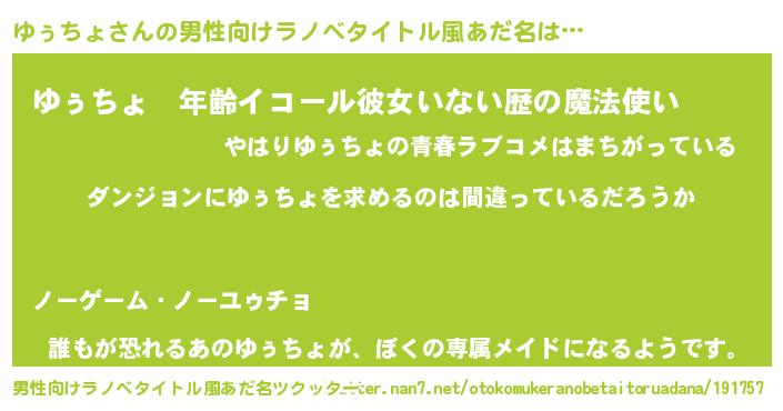 | ヘコむあだ名 | 『ゆぅお』『ゆぅちょ(小並感)』 |