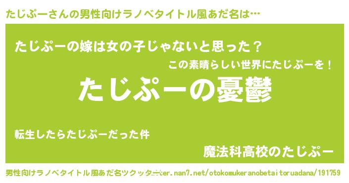 | 女子向けラノベタイトル風あだ名 | 『(仮)たじぷーのやんごとなき事情』 |