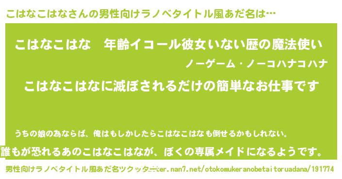 | 胡散臭い通販商品みたいなあだ名 | 『前代未聞の健康食品…その名も「こはなこはな」』 |