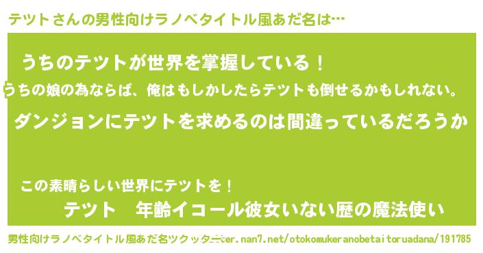 | 女子向けラノベタイトル風あだ名 | 『テツトは平凡を望む』『テツトの婚約者』 |