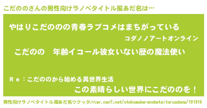 | 女子向けラノベタイトル風あだ名 | 『こだののの玉の輿計画!』 |