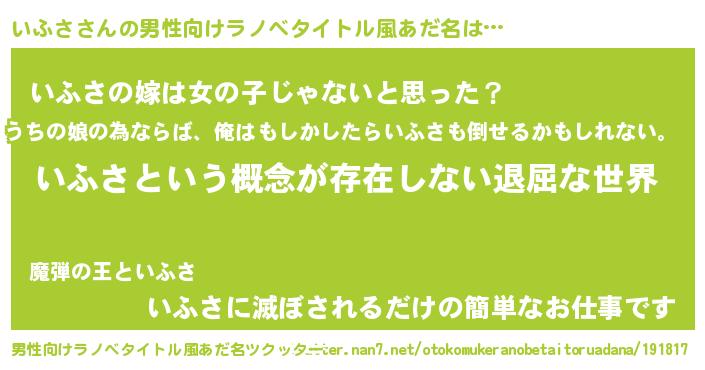 | 胡散臭い通販商品みたいなあだ名 | 『絶対に幸福をもたらす健康食品…その名も「いふさ」』 |