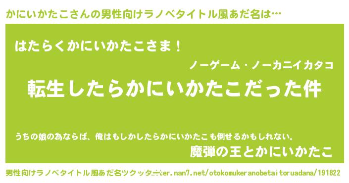 | 女子向けラノベタイトル風あだ名 | 『かにいかたこの玉の輿計画!』 |