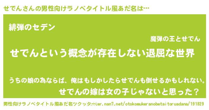| 胡散臭い通販商品みたいなあだ名 | 『絶対に幸福をもたらす水素水…その名も「せでん」』 |