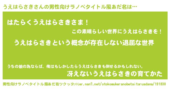 | 胡散臭い通販商品みたいなあだ名 | 『来世でも幸せになれる水素水…その名も「うえはらさき」』 |