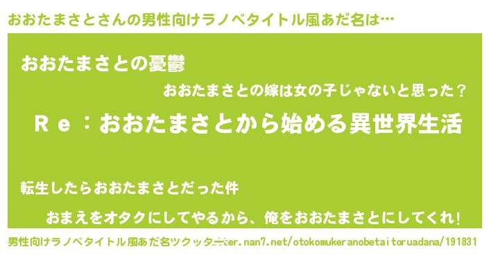 | 意味不明あだ名 | 『自称おおたまさと』 |