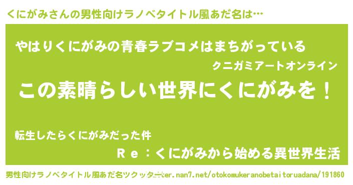 | 意味不明あだ名 | 『住所不定無職くにがみ(71歳)』 |