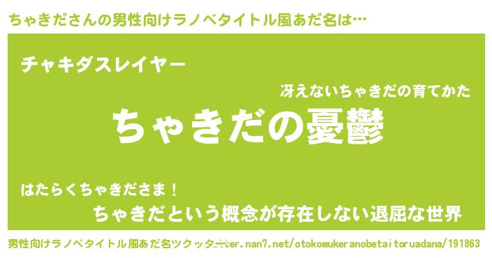 | 女子向けラノベタイトル風あだ名 | 『(仮)ちゃきだのやんごとなき事情』 |