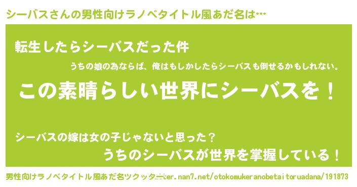| 意味不明あだ名 | 『住所不定無職シーバス(56歳)』 |